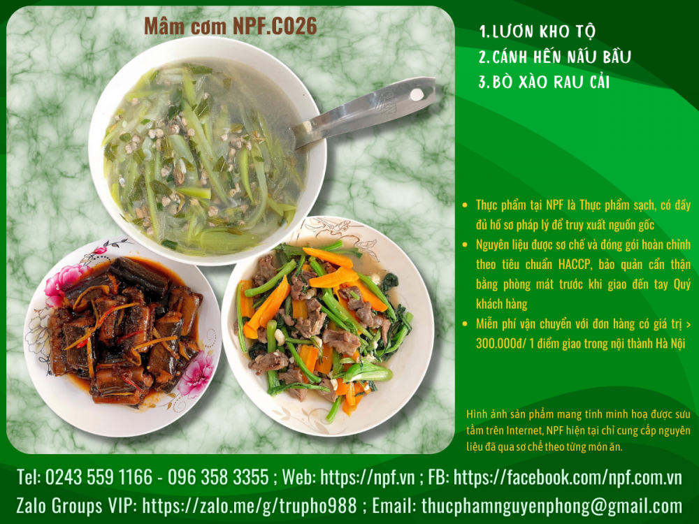 Lươn LS hộ: 0.4 Kg Hến: 0.4 Kg Bầu canh: 0.3 Kg Mông bò: 0.2 Kg Cải ngồng: 0.2 Kg Cà rốt gọt vỏ: 0.1 Kg Củ Gừng: 0.03 Kg Củ Nghệ: 0.03 Kg Hành lá: 0.05 Kg Thì là: 0.05 Kg Hành tỏi khô: 0.03 Kg Ớt cay (tiêu): 0.01 Kg